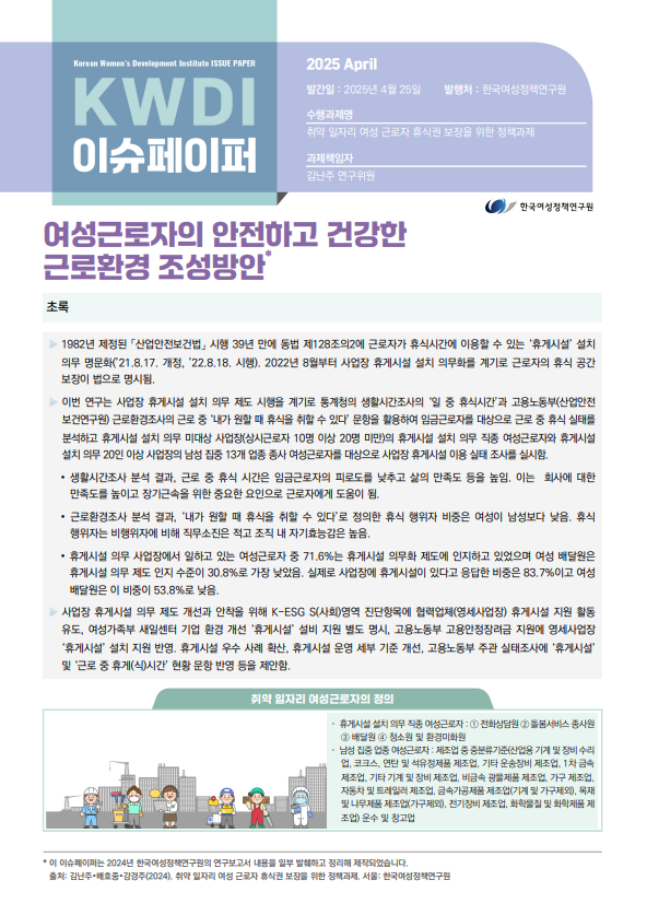 여성근로자의 안전하고 건강한 근로환경 조성방안
