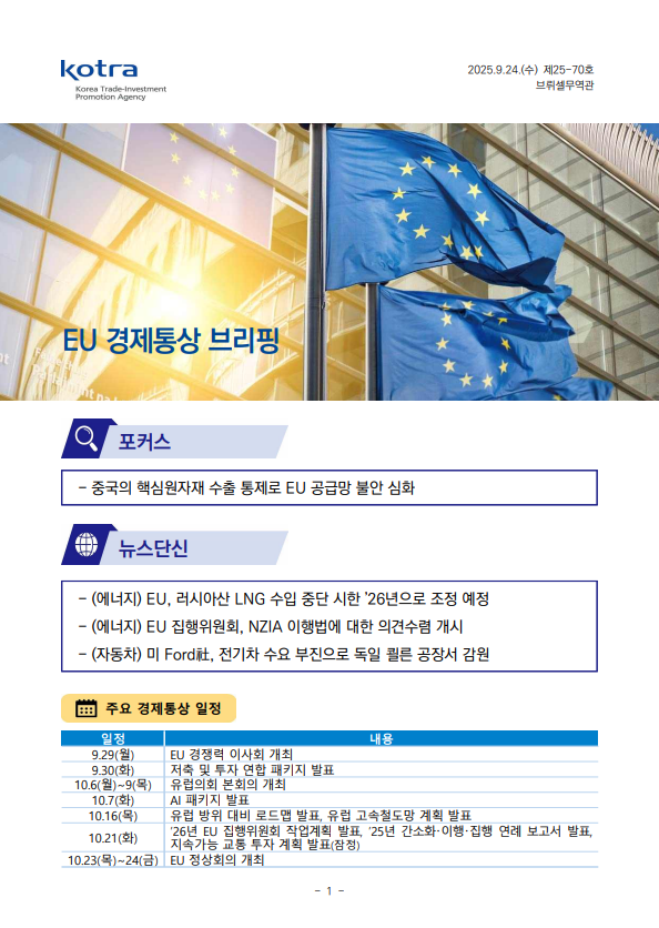 EU 경제통상 브리핑. 제25-70호, 중국의 핵심원자재 수출 통제로 EU 공급망 불안 심화
