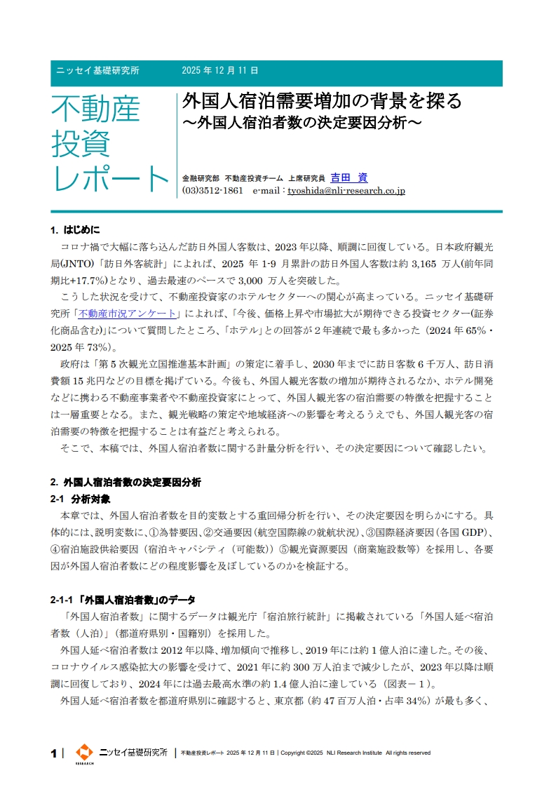 外国人宿泊需要増加の背景を探る: 外国人宿泊者数の決定要因分析