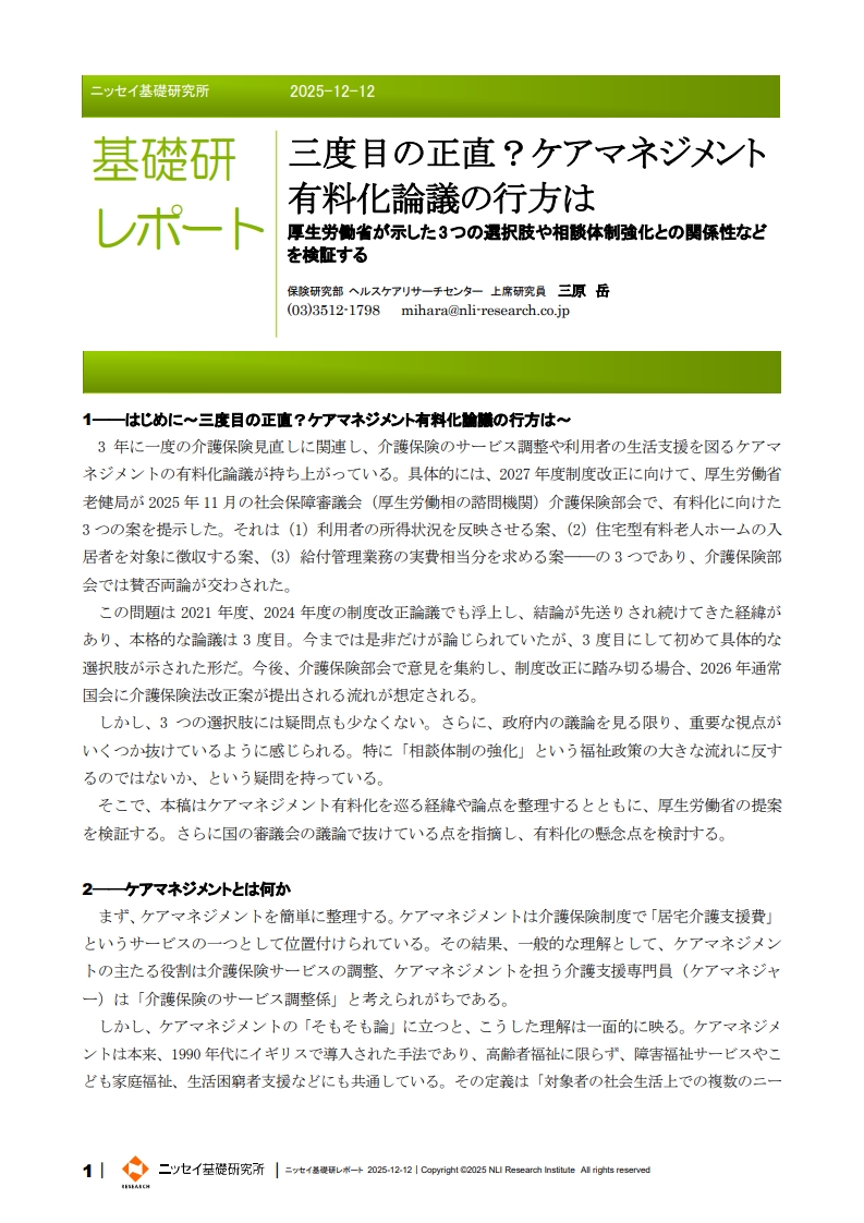 (세 번째 시도는 성공할까? 케어 매니지먼트 유료화 논의의 향방)