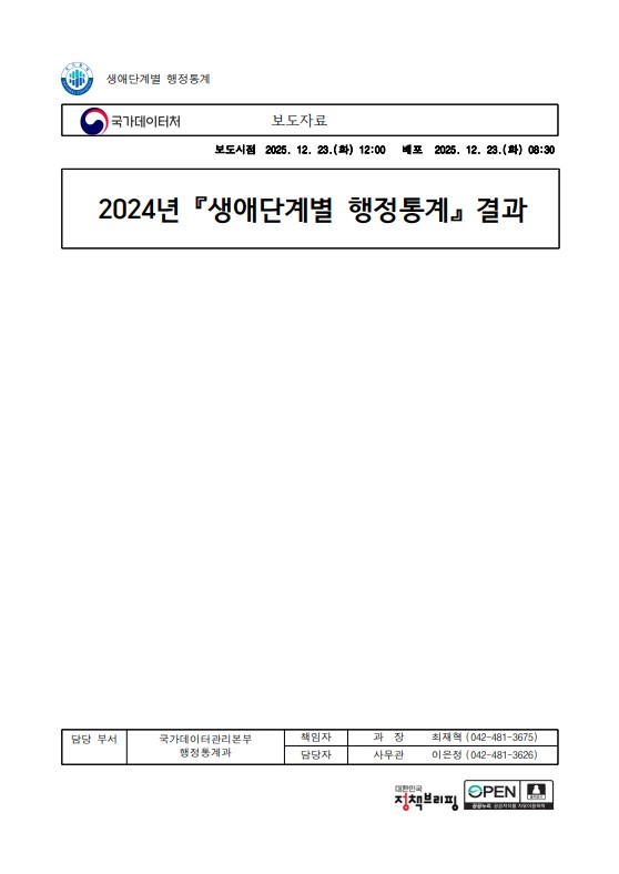 [출처] 2024년 생애단계별 행정통계 결과 (2025.12.23.) / 국가데이터처 보도자료