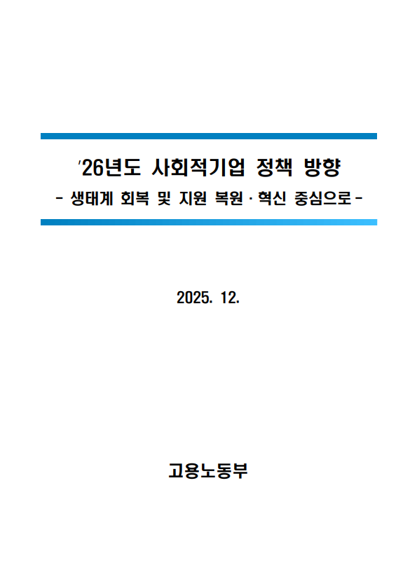 ’26년도 사회적기업 정책 방향 : 생태계 회복 및 지원 복원·혁신 중심으로