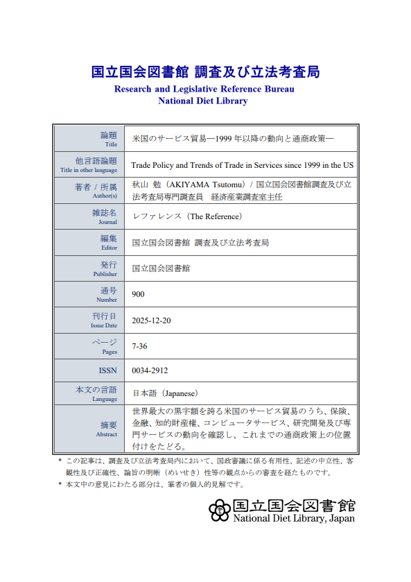 米国のサービス貿易: 1999年以降の動向と通商政策