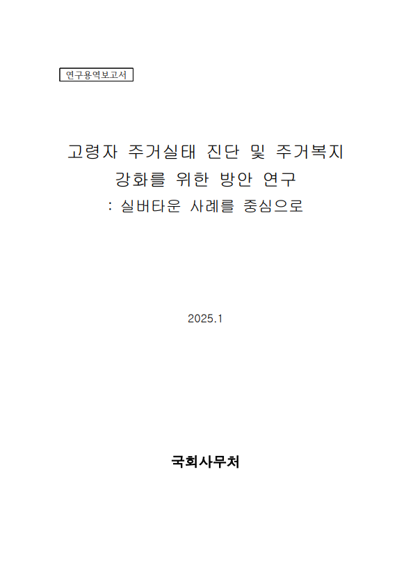 고령자 주거실태 진단 및 주거복지 강화를 위한 방안 연구 : 실버타운 사례를 중심으로 : 연구용역보고서