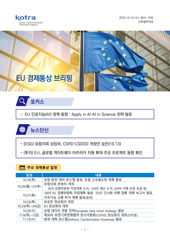 EU 경제통상 브리핑. 제25-75호, EU 인공지능(AI) 정책 동향 : Apply in AI·AI in Science 전략 발표