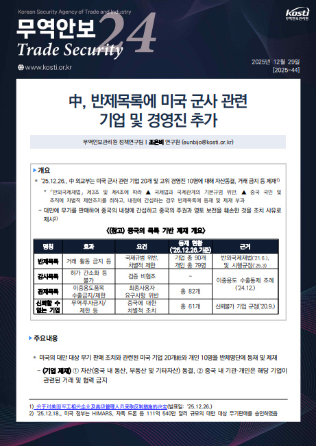 中, 반제목록에 미국 군사 관련 기업 및 경영진 추가