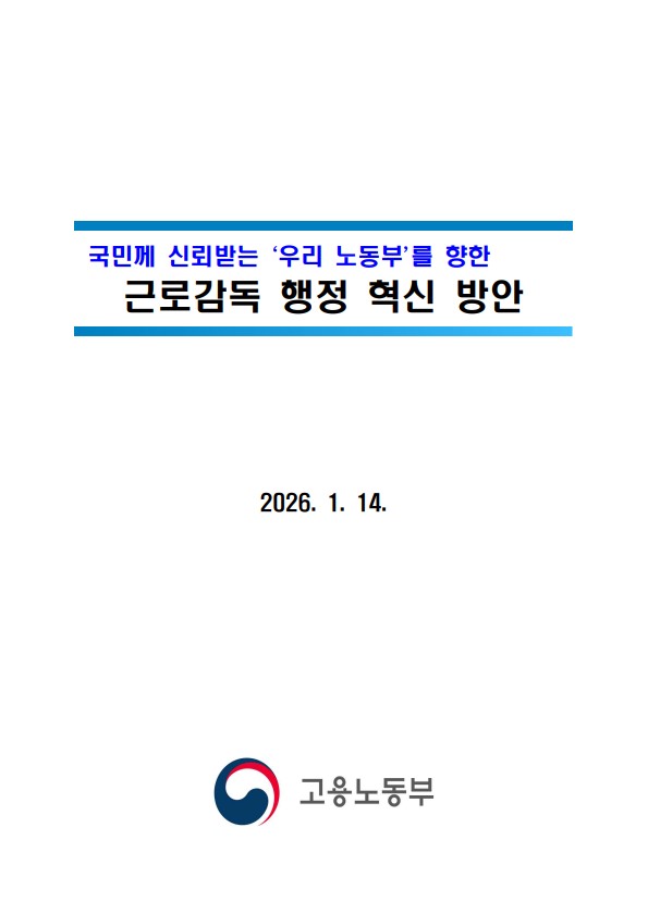 (국민께 신뢰받는 ‘우리 노동부’를 향한) 근로감독 행정 혁신 방안