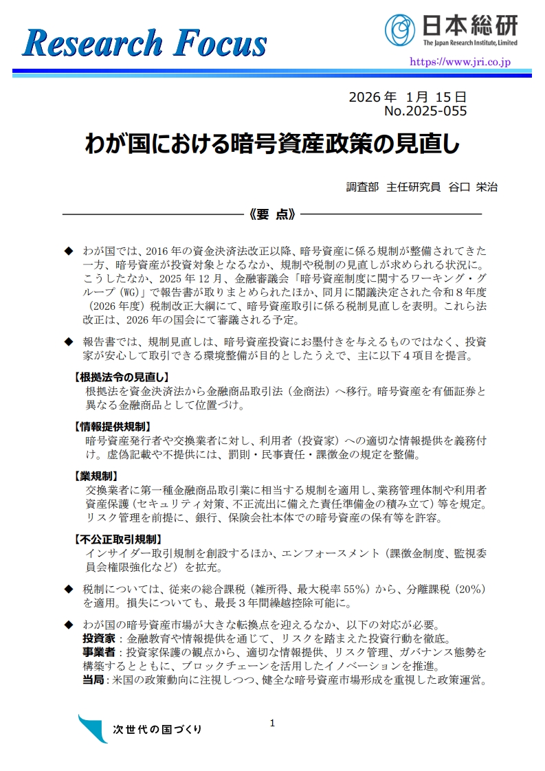 (일본 암호자산 정책의 재검토)