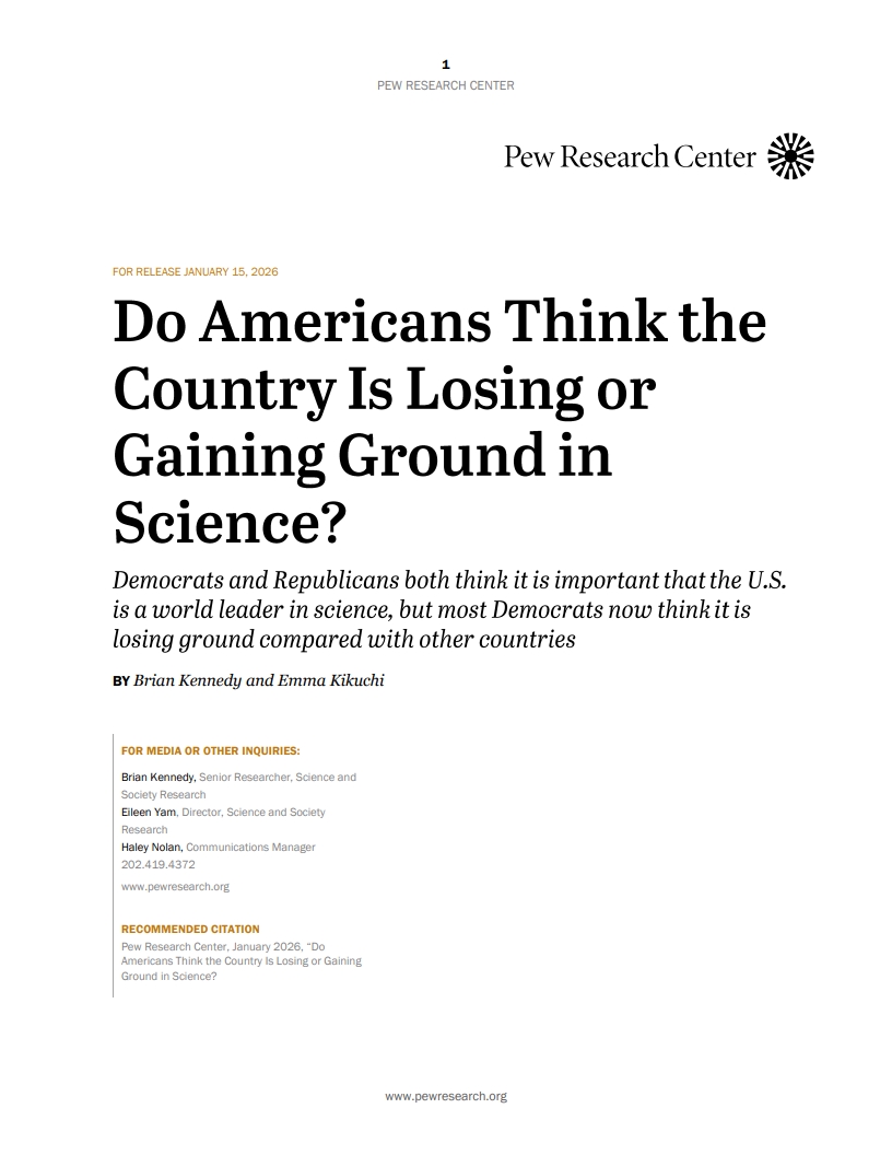 (미국인들은 국가가 과학에서 입지를 잃고 있다고 생각하는가, 아니면 강화되고 있다고 보는가?)