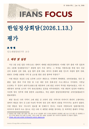 지난 1월 13일 일본 나라(奈良) 현에서 개최된 한일정상회담은 이재명 정부 출범 이후 일본과 갖는 5번째 정상회담이다. 회담에 앞서 우리 정부는 그 목적을 셔틀외교를 통한 양국 정상 간의 유대와 신뢰 강화, 실질 협력 관계 강화, 과거사 문제에 대한 인도적 차원의 협력 강화, 한반도 문제를 포함한 지역 및 글로벌 현안 관련 협력에 두었다.