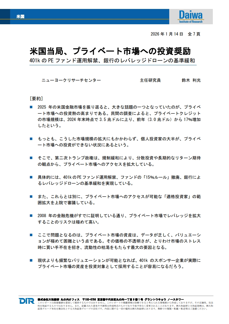 (미 당국, 프라이빗 시장에 대한 투자 장려)