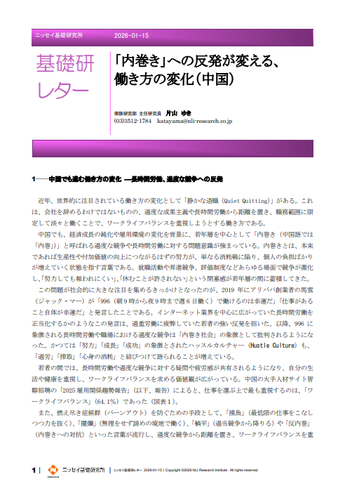 1――中国でも進む働き方の変化 ―長時間労働、過度な競争への反発 1