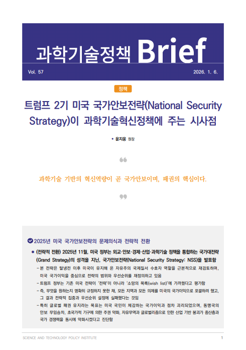 트럼프 2기 미국 국가안보전략(National Security Strategy)이 과학기술혁신정책에 주는 시사점