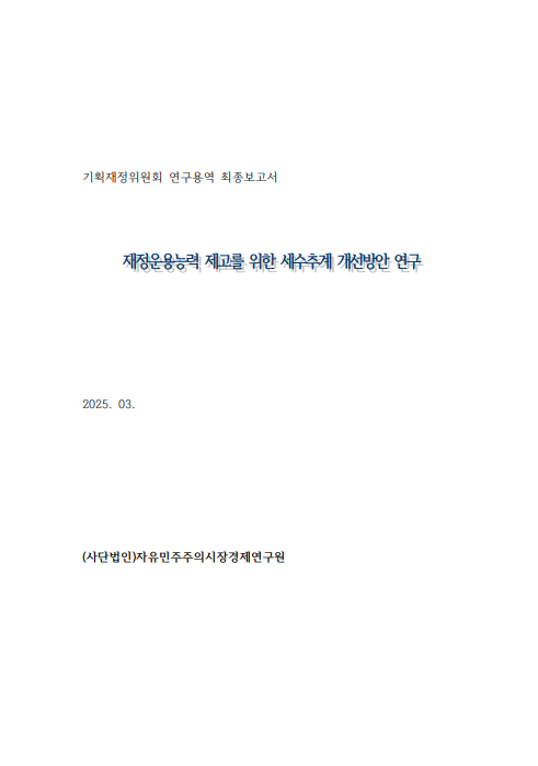 재정운용능력 제고를 위한 세수추계 개선방안 연구 : 기획재정위원회 연구용역 최종보고서