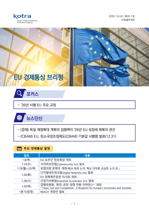 EU 경제통상 브리핑. 제26-1호, '26년 시행 EU 주요 규정