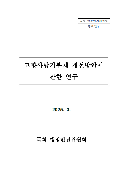 고향사랑기부제 개선방안에 관한 연구 : 국회 행정안전위원회 정책연구