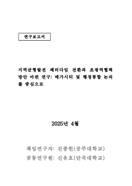 지역균형발전 패러다임 전환과 초광역협력 방안 마련 연구 : 메가시티 및 행정통합 논의를 중심으로 : 2024 국회사무처 연구용역 과제 보고서