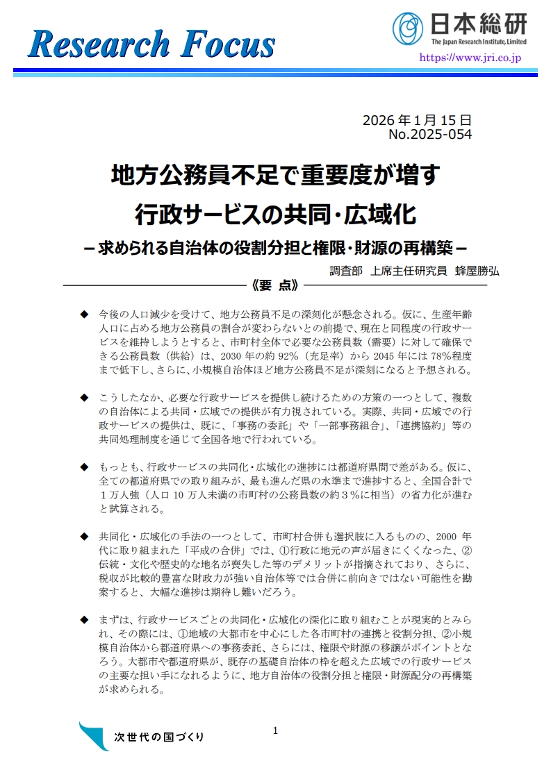 地方公務員不足で重要度が増す行政サービスの共同・広域化
