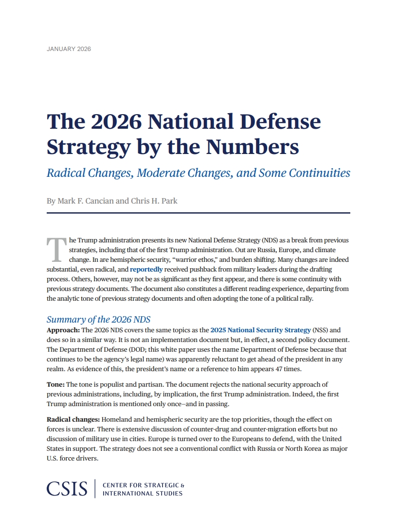 (2026년 국가방위전략 수치로 본 분석: 급진적 변화, 중간 수준 변화, 그리고 일부 지속성)