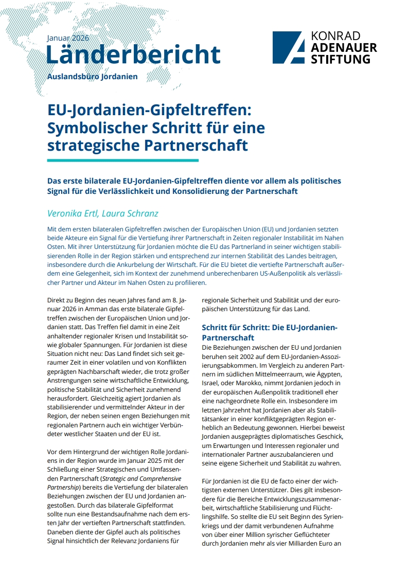 EU-Jordanien-Gipfeltreffen: Symbolischer Schritt für eine strategische Partnerschaft