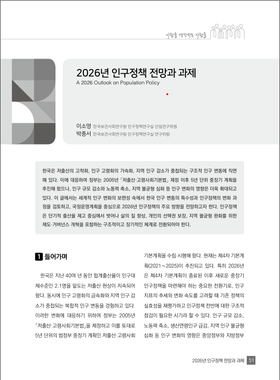 2026년 인구정책 전망과 과제