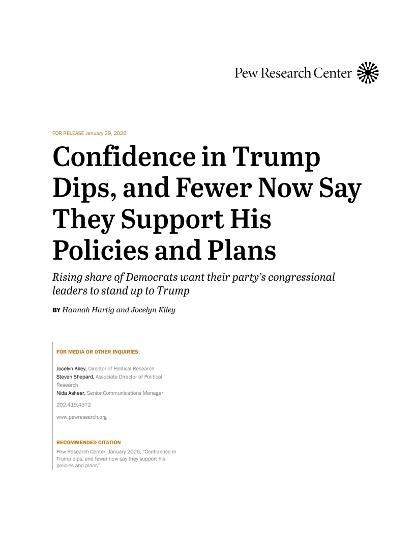 (트럼프에 대한 신뢰 하락, 그의 정책과 계획을 지지한다는 응답도 감소)