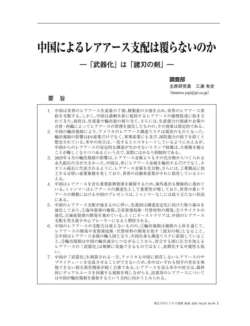 中国によるレアアース支配は覆らないのか