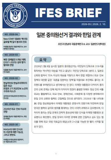 2026년 2월 8일 실시된 일본의 중의원선거는 자민당이 단독으로 316석을 획득하는 역사적인 대승을 거두고 끝났다. 자민당 단독으로 3분의 2, 일본유신회와 합쳐서 75% 이상의 대승을 거뒀다고 해서 헌법 개정이나 외교·안보 정책의 대전환 같은 ‘국론을 양분하는 정책’을 마음대로 추진해도 좋다는 프리핸드를 부여받았다고 생각해서는 안 된다. 이재명 대통령과 다카이치 총리 간의 신뢰 관계는 강해 제2차 다카이치 정권이 출범한 뒤에도 정상 간의 셔틀외교는 활발해지고, 외교·안보, 경제(안보), 사회문화 등 다양한 분야에서의 한일 간의 교류와 협력도 긴밀해질 것으로 생각된다. 2026년 1월 나라(奈良) 한일 정상회담에서 이재명 대통령은 문명사적 전환기에 직면하여 한일 양국은 협력의 깊이와 범위를 확대하는 것이 시대적 과제라고 강조했으며, 다카이치 총리는 한일 관계의 전략적 중요성에 대한 인식을 이재명 대통령과 공유했다고 확인했다. 한일 양국이 이러한 문제에 관한 긴밀하고 심도 있는 협의를 위해 외교·국방 각료급의 회담(소위 2+2)을 가능한 한 빨리 시작할 필요가 있다.