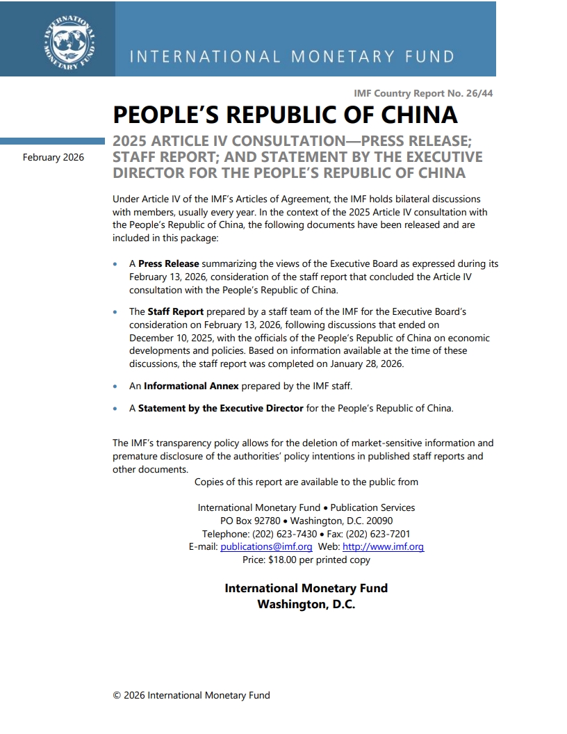 People’s Republic of China: 2025 Article IV Consultation-Press Release; Staff Report; and Statement by the Executive Director for the People’s Republic of China (2026.02.18.) / International Monetary Fund (IMF)