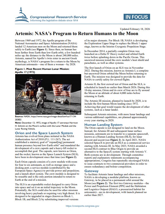 (아르테미스: 인간을 달에 돌려보내기 위한 NASA의 프로그램 (2월 18일 업데이트))