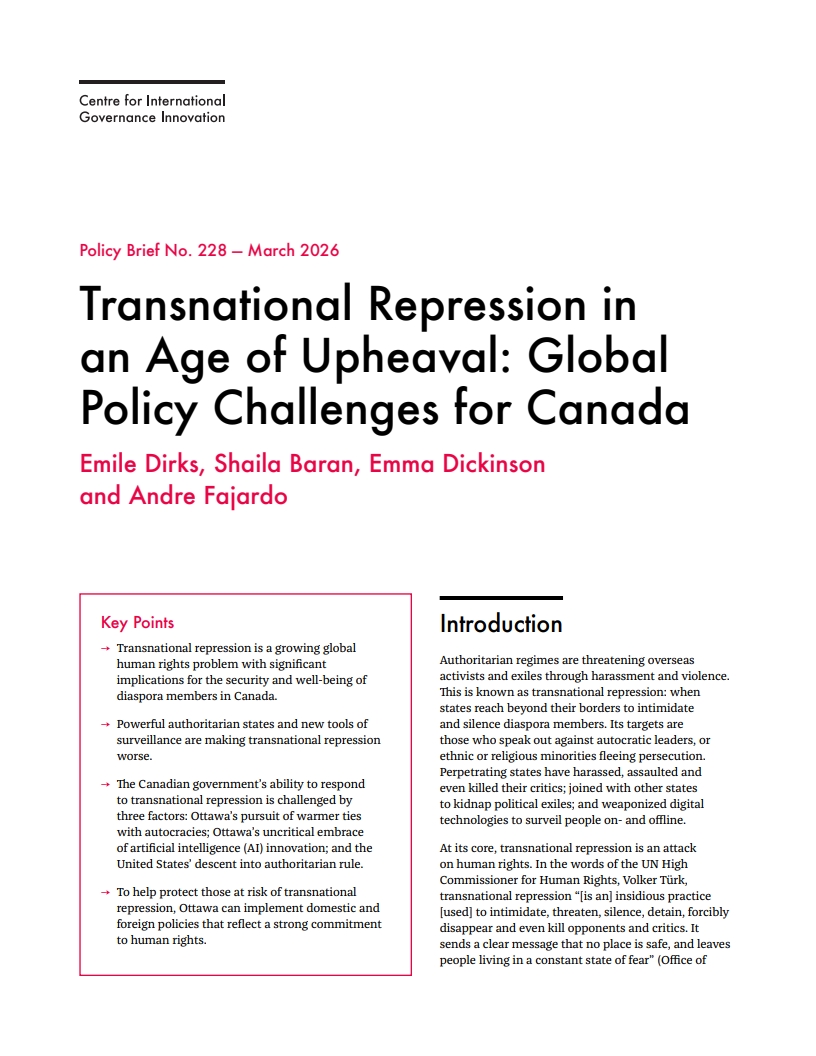 Transnational Repression in an Age of Upheaval: Global Policy Challenges for Canada