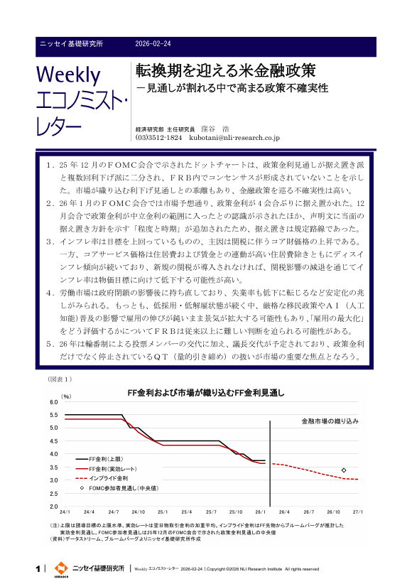 転換期を迎える米金融政策: 見通しが割れる中で高まる政策不確実性