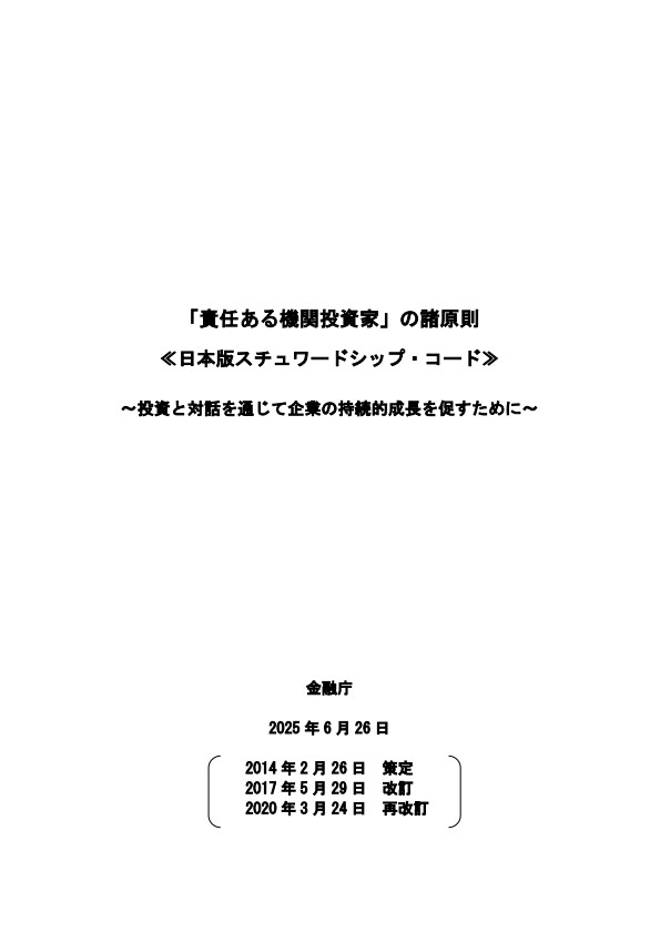 責任ある機関投資家」の諸原則 ≪日本版スチュワードシップ・コード≫