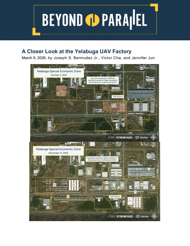 □ 미국 워싱턴DC의 싱크탱크 전략국제문제연구소(CSIS) 산하 북한 전문 웹사이트 비욘드패럴렐(Beyond Parallel)은 9일, 「옐라부가 무인항공기(UAV) 공장 살펴보기 (A Closer Look at the Yelabuga UAV Factory)」 보고서를 발표하고, 러시아 타타르스탄 공화국에 있는 옐라부가 경제특구 내 드론 생산 공장이 우크라이나 침공 이후 급격히 확장되었다고 언급함