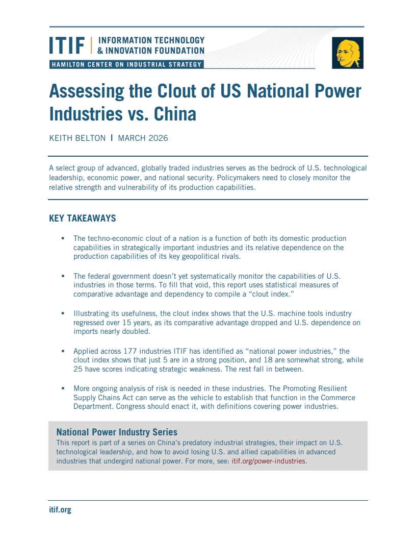 (미국 국가 역량 산업 대 중국 영향력 평가)