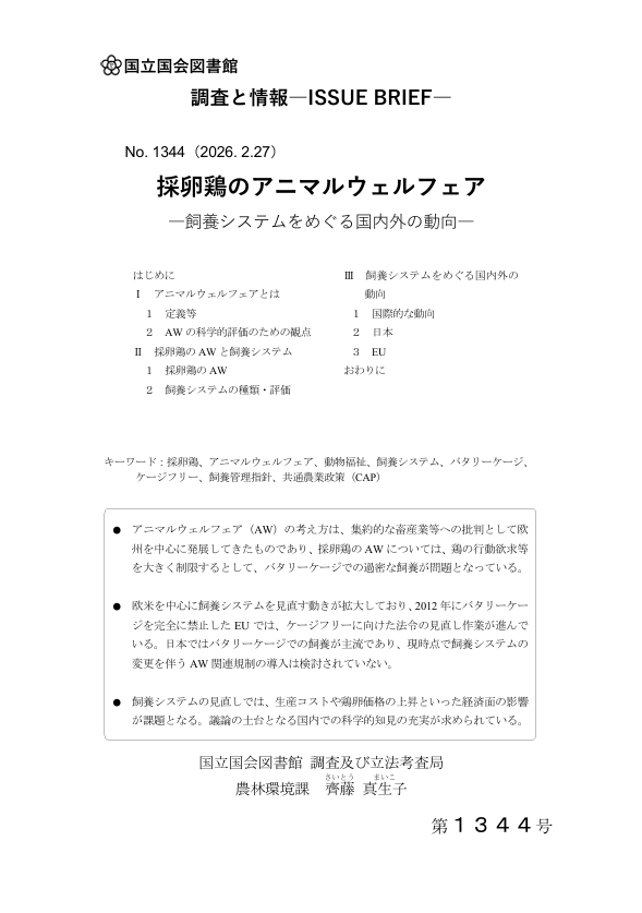 採卵鶏のアニマルウェルフェア: 飼養システムをめぐる国内外の動向