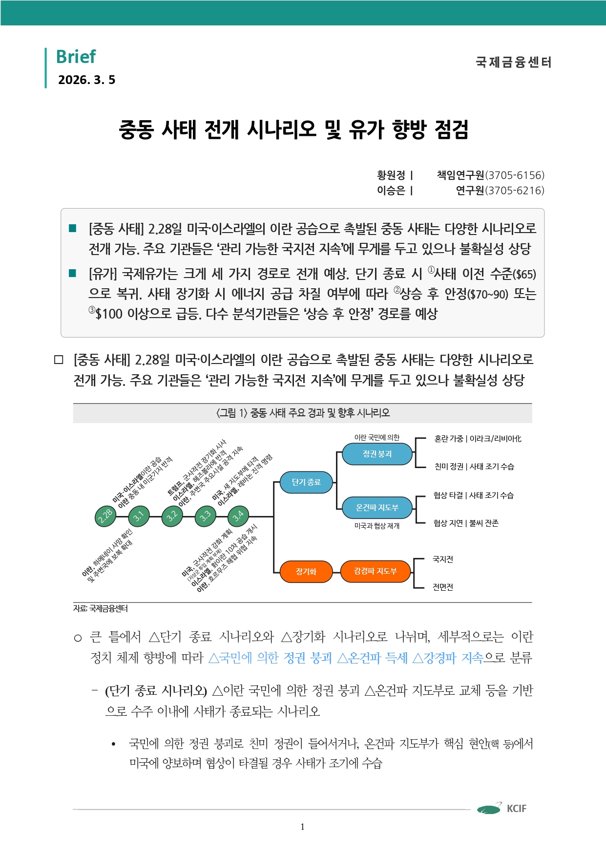 중동 사태 전개 시나리오 및 유가 향방 점검