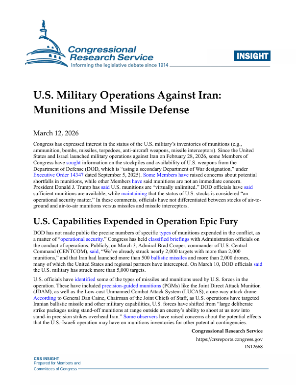 U.S. Military Operations Against Iran: Munitions and Missile Defense