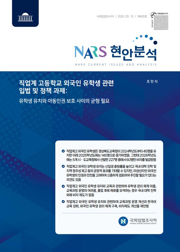 직업계 고등학교 외국인 유학생 관련 입법 및 정책 과제: 유학생 유치와 아동인권 보호 사이의 균형 필요