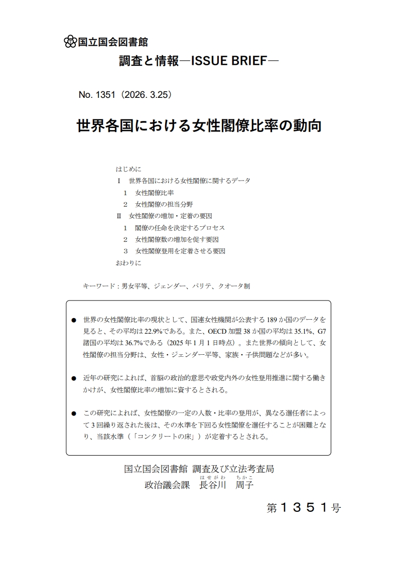 Ⅰ 世界各国における女性閣僚に関するデータ