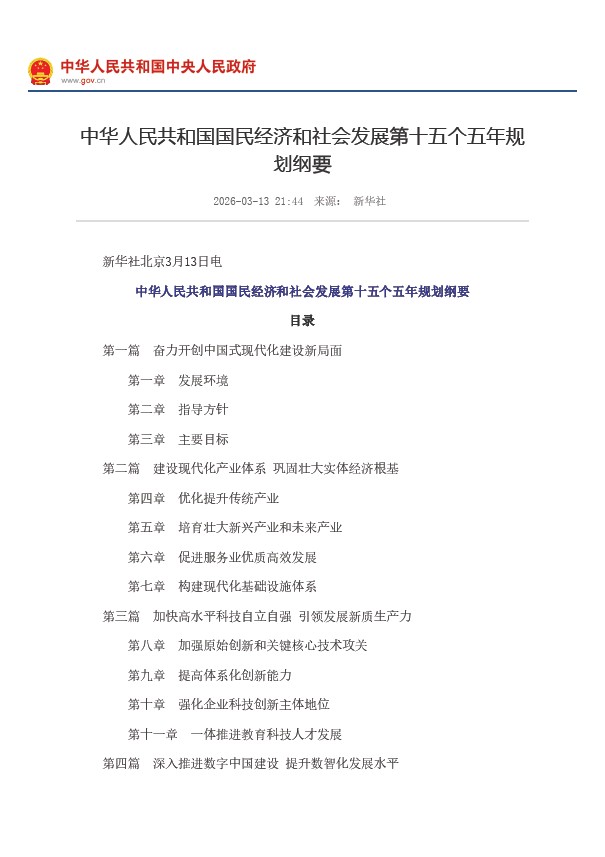 中华人民共和国国民经济和社会发展第十五个五年规划纲要