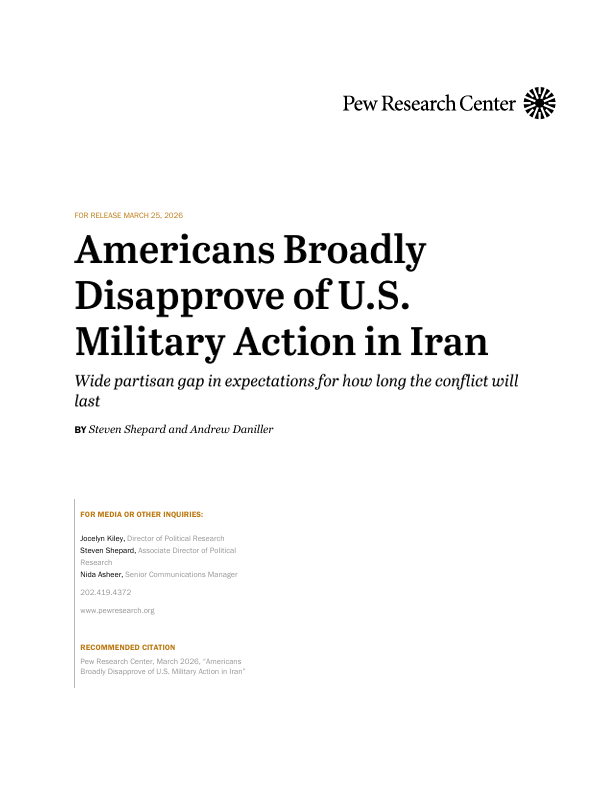 Americans Broadly Disapprove of U.S. Military Action in Iran: Wide partisan gap in expectations for how long the conflict will last