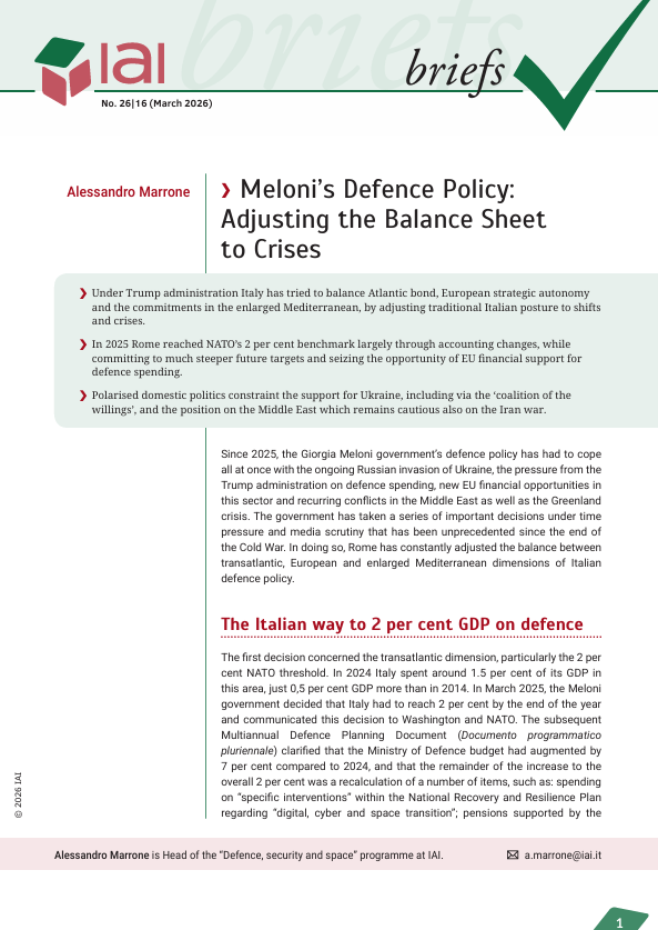 Meloni’s Defence Policy: Adjusting the Balance Sheet to Crises
