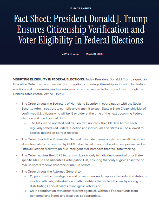 Fact Sheet: President Donald J. Trump Ensures Citizenship Verification and Voter Eligibility in Federal Elections