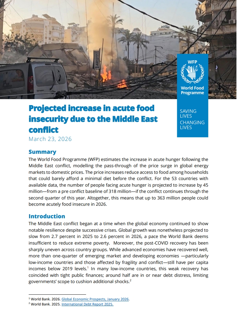 Projected increase in acute food insecurity due to the Middle East conflict (2026.03.23.) / World Food Programme (WFP)