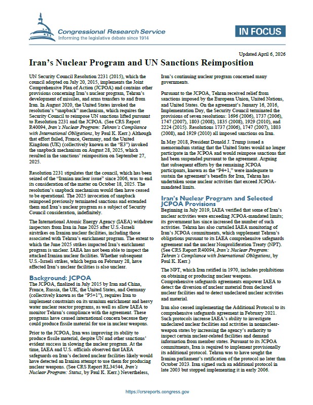 Iran’s Nuclear Program and UN Sanctions Reimposition