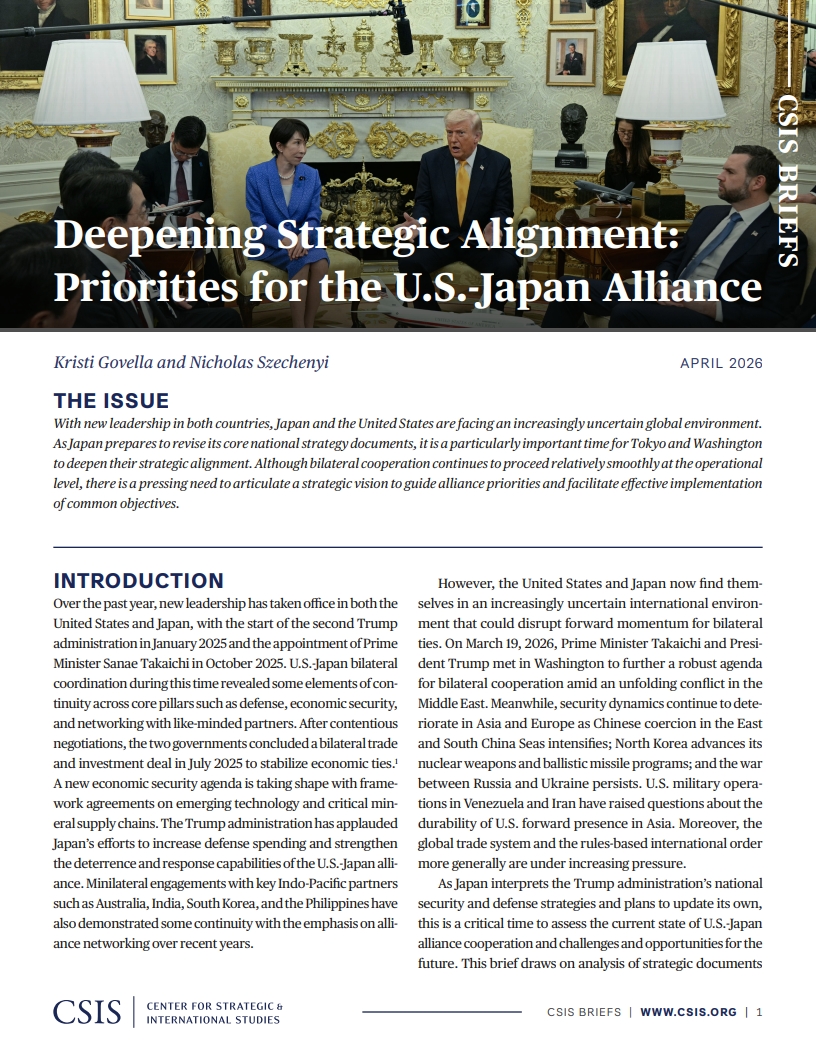 Deepening Strategic Alignment: Priorities for the U.S.-Japan Alliance