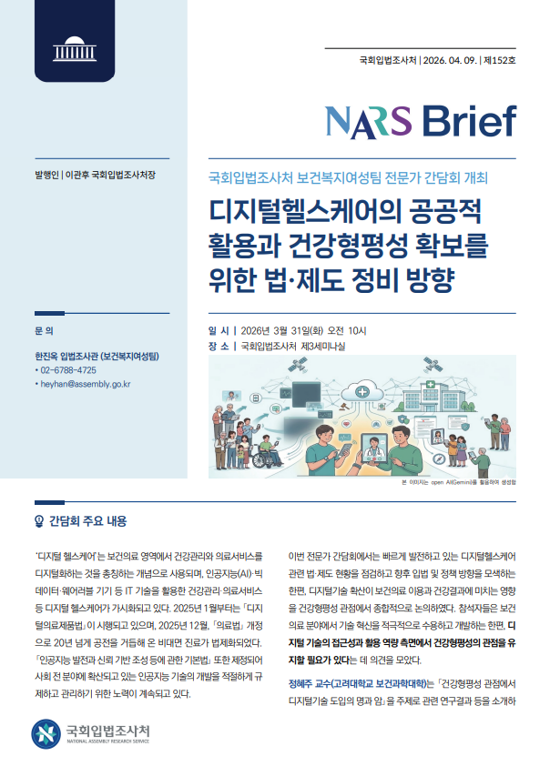 디지털헬스케어의 공공적 활용과 건강형평성 확보를 위한 법·제도 정비 방향