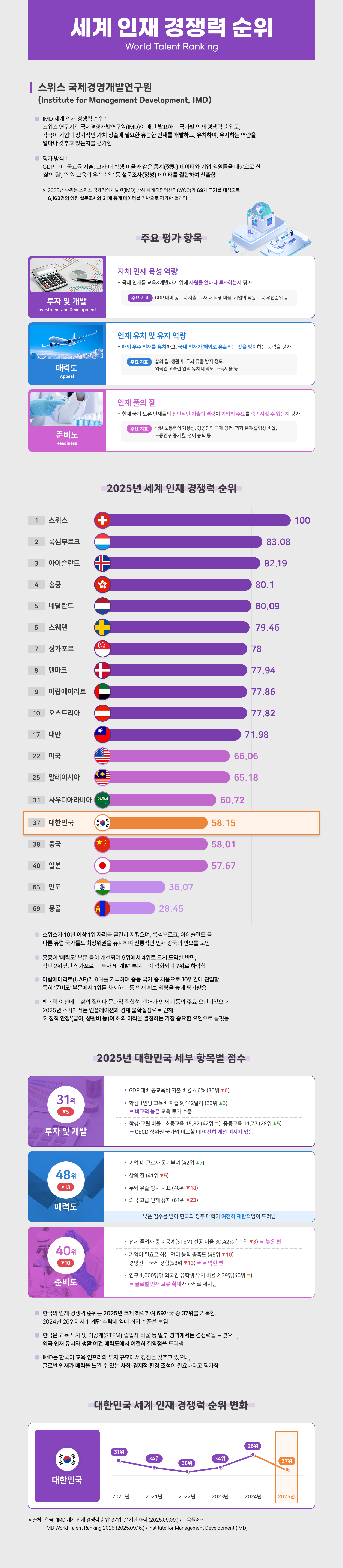 한국, 'IMD 세계 인재 경쟁력 순위' 37위…11계단 추락 (2025.09.09.) / 교육플러스