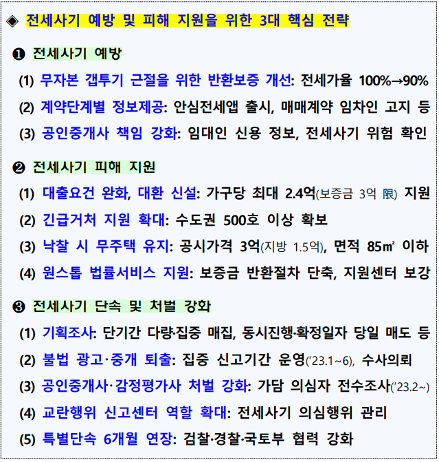 - 범정부 차원의 「전세사기 예방 및 피해 지원방안」 발표 (2023.02.02.) / 국토교통부